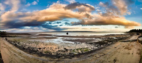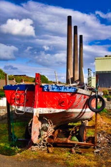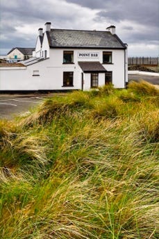 On the ferry dock for Greencastle, a pub/restaurant in the dunes, overlooking Lough Foyle and Donegal.