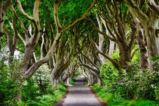 The small pub has one of the 10 doors inspired by a scene from The Games of Thrones, carved out of the felled trees of The Dark Hedges.
