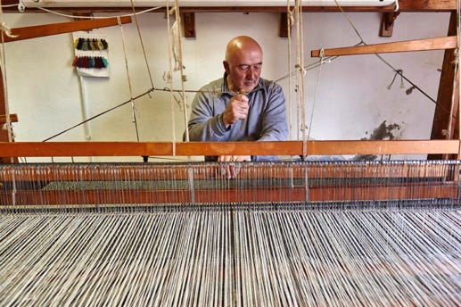 For almost fifty years, in Ardara, Eddie has been weaving tweed by hand, as he used to.