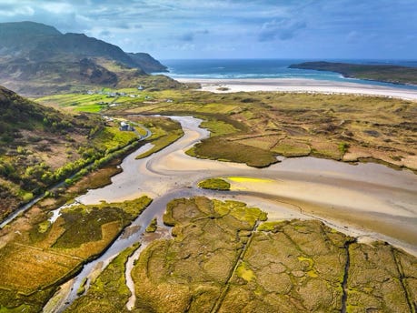 A small thatched-roof cottage and lots of traditional music on the Atlantic Drive of the Rosguill Peninsula.