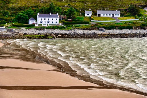 An atmospheric old house overlooking Blacksod Bay and Nephin Mountain. It is both a hostel and a pub.