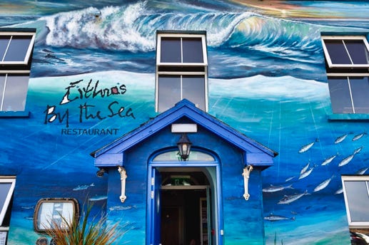 Along the Greenway, a pub with rooms, good food and great music. Nice view of the sea and the mountains.